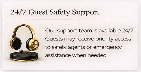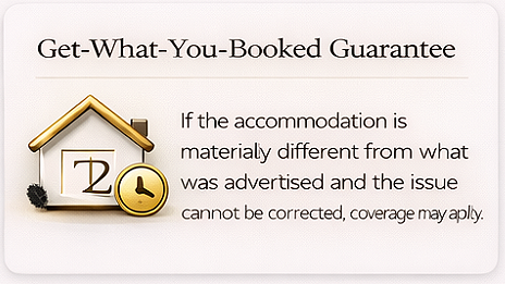 Booking Protection Guarantee • Check-In Guarantee • Get-What-You-Booked Guarantee • 24/7 Guest Safety & Support